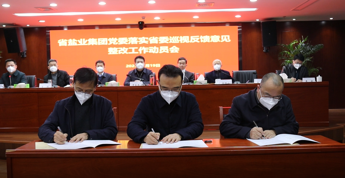 會議集中學習了習近平總書記關于巡視工作的重要論述,傳達了鄭柵潔書記在省委書記專題會上關于巡視整改工作的部署要求,學習了省委辦公廳《關于進一步加強和改進巡視整改工作意見的通知》和《關于加強省委巡視整改和成果運用的若干措施》,解讀了《省鹽業(yè)集團黨委關于健全工作機制推進省委巡視整改落實的通知》和省鹽業(yè)集團黨委落實巡視反饋意見整改、紀委落實巡視反饋意見整改、干部選拔任用專項檢查意見整改、意識形態(tài)工作專項檢查意見整改、巡察工作專項檢查意見整改的實施方案,各二級單位、本部各部門簽訂了“一對一”《整改任務書》,順朝公司、集團公司運營管理部作了巡視整改表態(tài)發(fā)言。