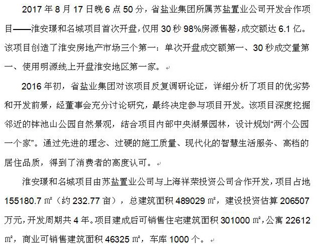 江蘇省鹽業(yè)集團合作開發(fā)項目開盤30秒銷售6.1億元