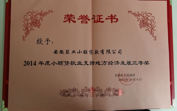 近日,徽鹽小貸公司榮獲合肥市“2014年度小額貸款業(yè)支持地方經(jīng)濟(jì)發(fā)展”三等獎(jiǎng)。“金融機(jī)構(gòu)支持地方經(jīng)濟(jì)發(fā)展獎(jiǎng)”由合肥市人民政府設(shè)立,每年度表彰一次,旨在表彰為合肥經(jīng)濟(jì)社會(huì)持續(xù)快速健康發(fā)展做出重要貢獻(xiàn)的在肥金融機(jī)構(gòu)。