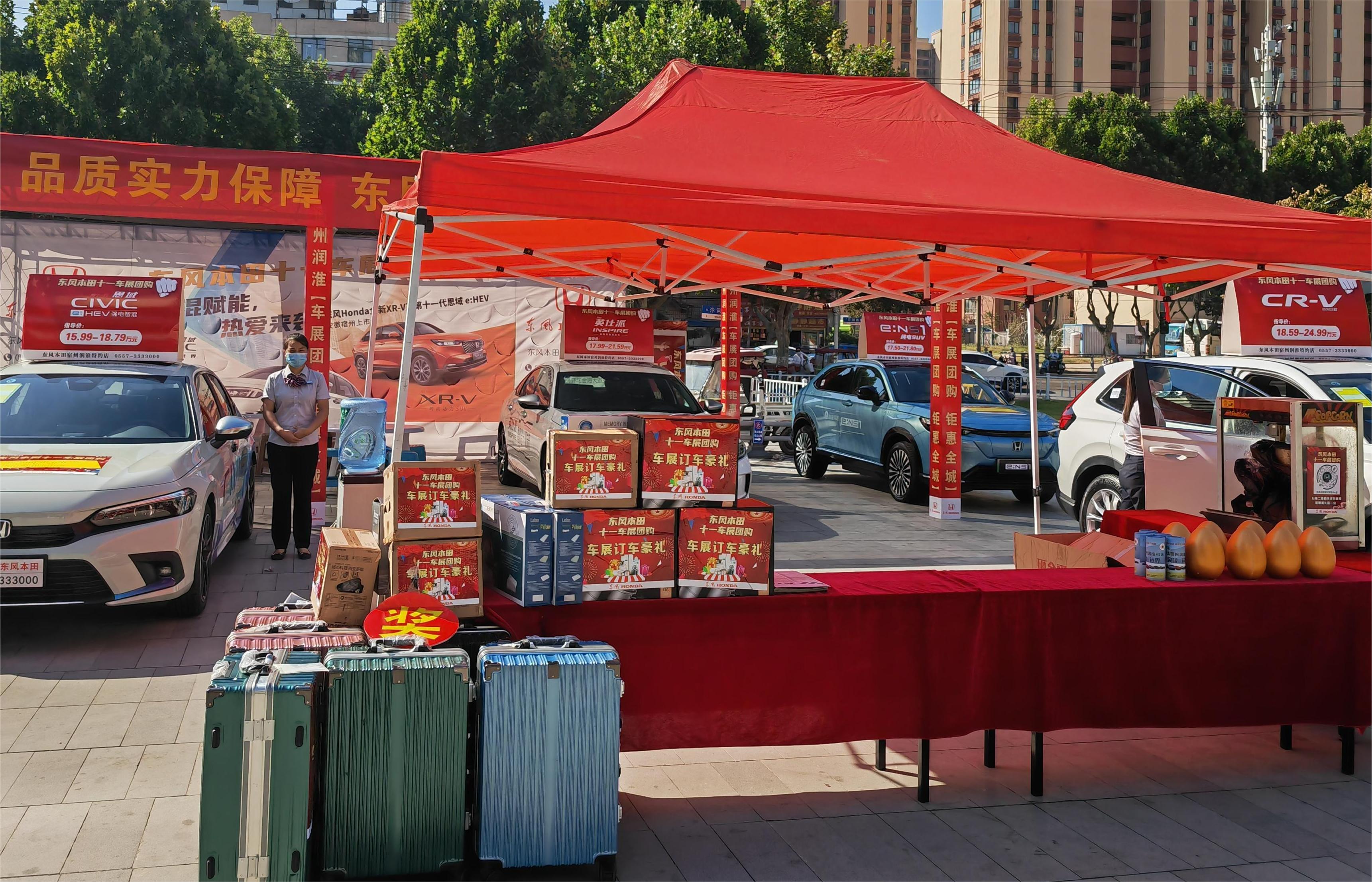 為加大新車宣傳力度,節(jié)日期間,潤淮店在當(dāng)?shù)厝肆髁枯^大的商圈舉辦了為期三天的車展,在店內(nèi)舉辦了“東風(fēng)本田·國慶團(tuán)購會(huì)”主題促銷活動(dòng)。活動(dòng)期間,凡邀約進(jìn)店試駕ENS1新能源汽車的客戶,贈(zèng)送精美禮品一份,訂車客戶還可參與“砸金蛋·領(lǐng)好禮”活動(dòng)。