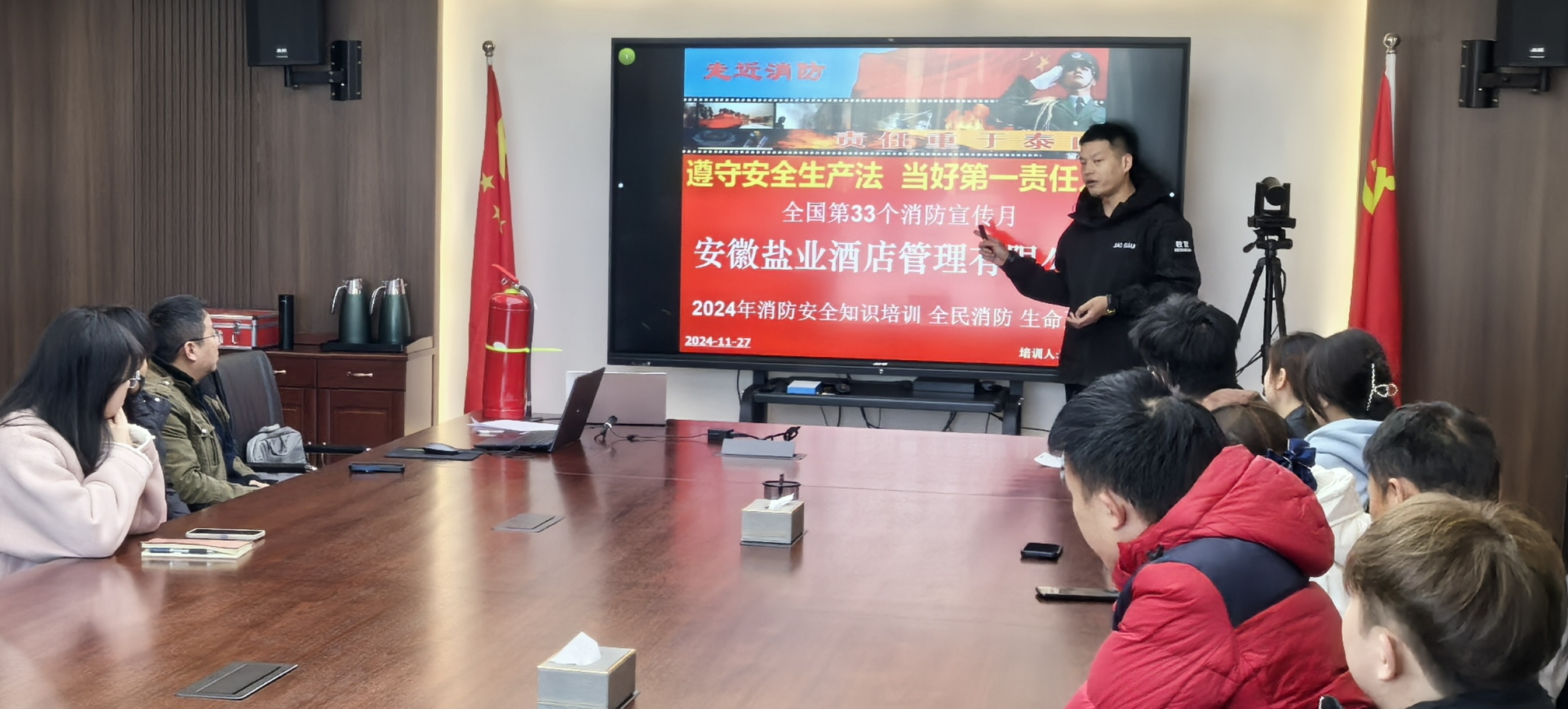 活動中,酒店公司邀請省消防協(xié)會專業(yè)教官講解火災預防、火情處置、火場逃生等事項,現(xiàn)場操作消防器材進行救火流程示范,并觀看2024安全警示片《危險降臨》。重點提升了緊急情況下的人員疏散逃生、初期火災及現(xiàn)場的應急處置能力,防止火災事故擴大,保障人員人身安全和財產(chǎn)免受重大損失。